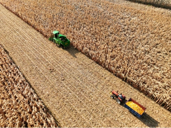 ▲玉米豐收機(jī)械化采收?qǐng)鼍?/font>