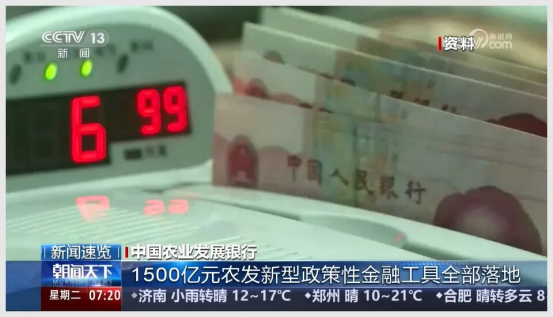 央視新聞:中國農業(yè)發(fā)展銀行1500億元農發(fā)新型政策性金融工具全部落地