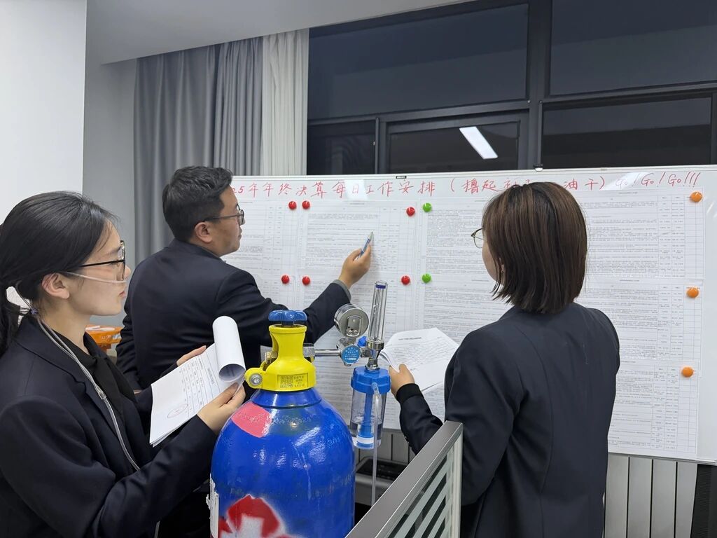 機(jī)房燈火與晨曦交輝,映照著每一張專(zhuān)注的面孔。鍵盤(pán)的敲擊聲、電話的溝通聲、報(bào)表的翻頁(yè)聲交織成一首奮進(jìn)的樂(lè)章,回蕩在決算現(xiàn)場(chǎng)的每一個(gè)角落。
