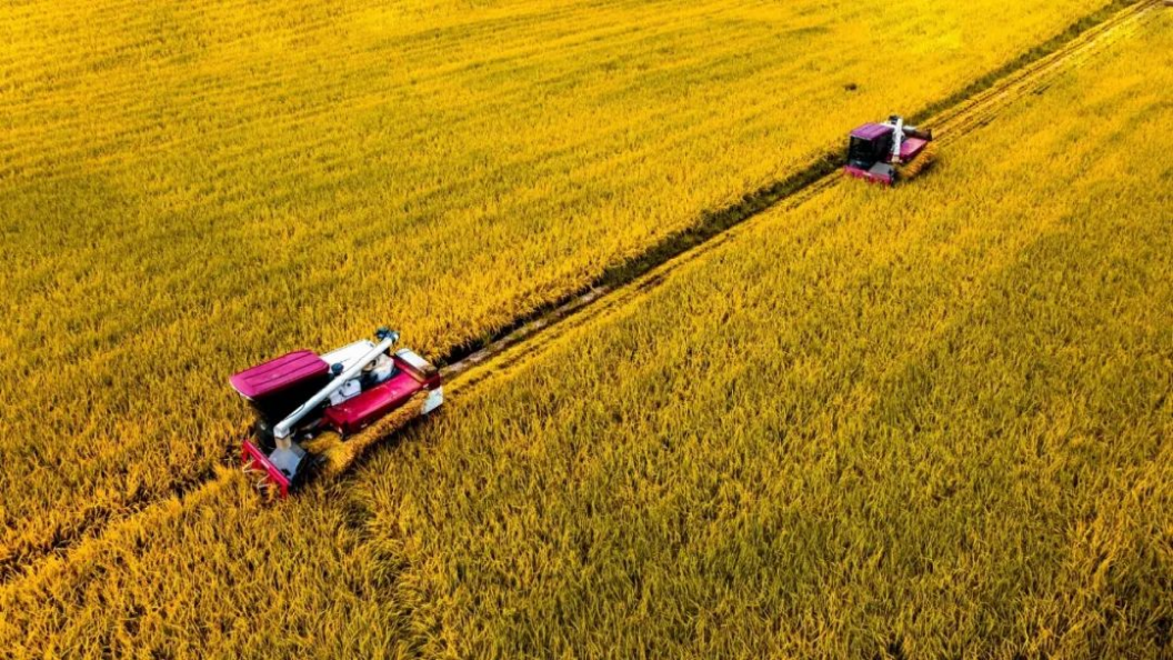 ▲中國農(nóng)業(yè)發(fā)展銀行四川省眉山市分行信貸支持高標(biāo)準(zhǔn)農(nóng)田新建和改造提升,圖為東坡區(qū)永豐村高標(biāo)準(zhǔn)農(nóng)田大規(guī)模收割場景
