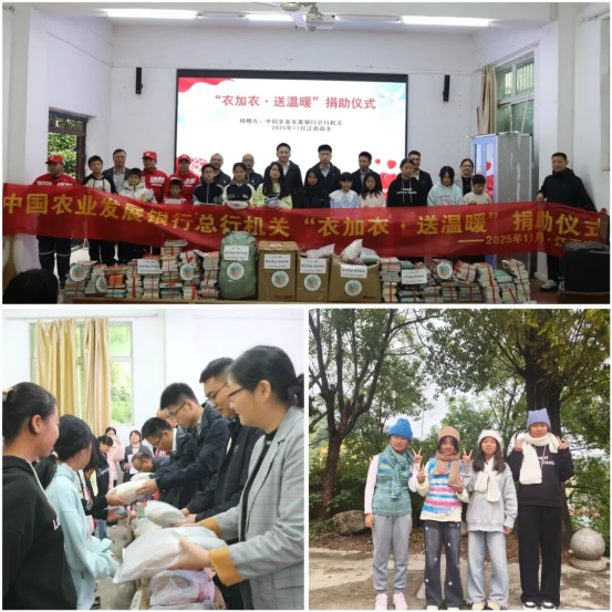 10月底,馬關(guān)縣定點(diǎn)幫扶三人小組聯(lián)合馬關(guān)縣支行、省分行掛鉤幫扶馬鞍山社區(qū)舉辦了捐贈(zèng)儀式,將募集到的冬季衣物捐贈(zèng)給當(dāng)?shù)厝罕?,送去溫暖與關(guān)懷。11月4日,總行機(jī)關(guān)團(tuán)委書記前往江西南豐,與當(dāng)?shù)剞r(nóng)發(fā)行掛職干部赴三溪鄉(xiāng)中心學(xué)校舉辦捐贈(zèng)儀式,將募集到的書籍和公益編織作品送到孩子們的手中,用跨越萬水千山的心意助力孩子們的健康成長。