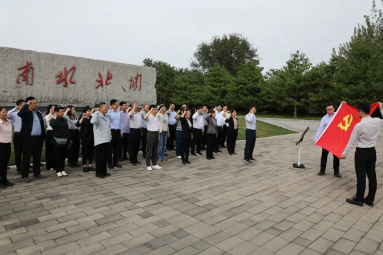 活動(dòng)當(dāng)天上午,全體人員聽(tīng)取基礎(chǔ)設(shè)施部黨支部水利處負(fù)責(zé)同志介紹農(nóng)發(fā)行“水利銀行”品牌建設(shè)情況。下午,前往南水北調(diào)團(tuán)城湖調(diào)節(jié)池開(kāi)展現(xiàn)場(chǎng)教學(xué),參觀南水北調(diào)紀(jì)念園,深入了解南水北調(diào)工程建設(shè)歷程和發(fā)揮作用情況。在“飲水思源”紀(jì)念碑前,全體人員重溫入黨誓詞,面向黨旗莊嚴(yán)宣誓。參觀結(jié)束后,全體人員觀看新華社短片《跟著總書記“瞰”南水北調(diào)工程》,進(jìn)一步親身感受習(xí)近平總書記對(duì)人民飲水保障的高度重視和深情掛念。部分青年黨員圍繞“一泓清水潤(rùn)南北、青春接力述擔(dān)當(dāng)”作交流分享,以親身體會(huì)述說(shuō)了南水北調(diào)工程給沿線地區(qū)帶來(lái)的巨大變化,并深情朗誦了歌頌?zāi)纤闭{(diào)工程與農(nóng)發(fā)行履職擔(dān)當(dāng)?shù)母木幵?shī)歌《南水迢迢》。